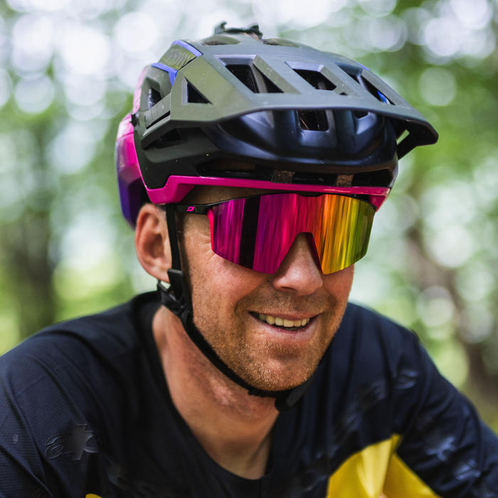 Die speziell für Radsportbegeisterte entwickelte Julbo EDGE steckt voller Premium-Features. Ihr leichtes, fließendes Fassungsdesign verleiht der EDGE ein besonders breites Sichtfeld mit Panoramasicht. Unsere exklusive MagneFix Technologie ermöglicht einen sekundenschnellen einfachen Glaswechsel, wenn die Strecke schlammiger ist als gedacht. Die Glasbelüftung sorgt dafür, dass Sie einen kühlen Kopf behalten und die umschließende Form der Fassung garantiert, dass die Brille auch bei rasanter Fahrt immer dort bleibt wo sie hingehört.