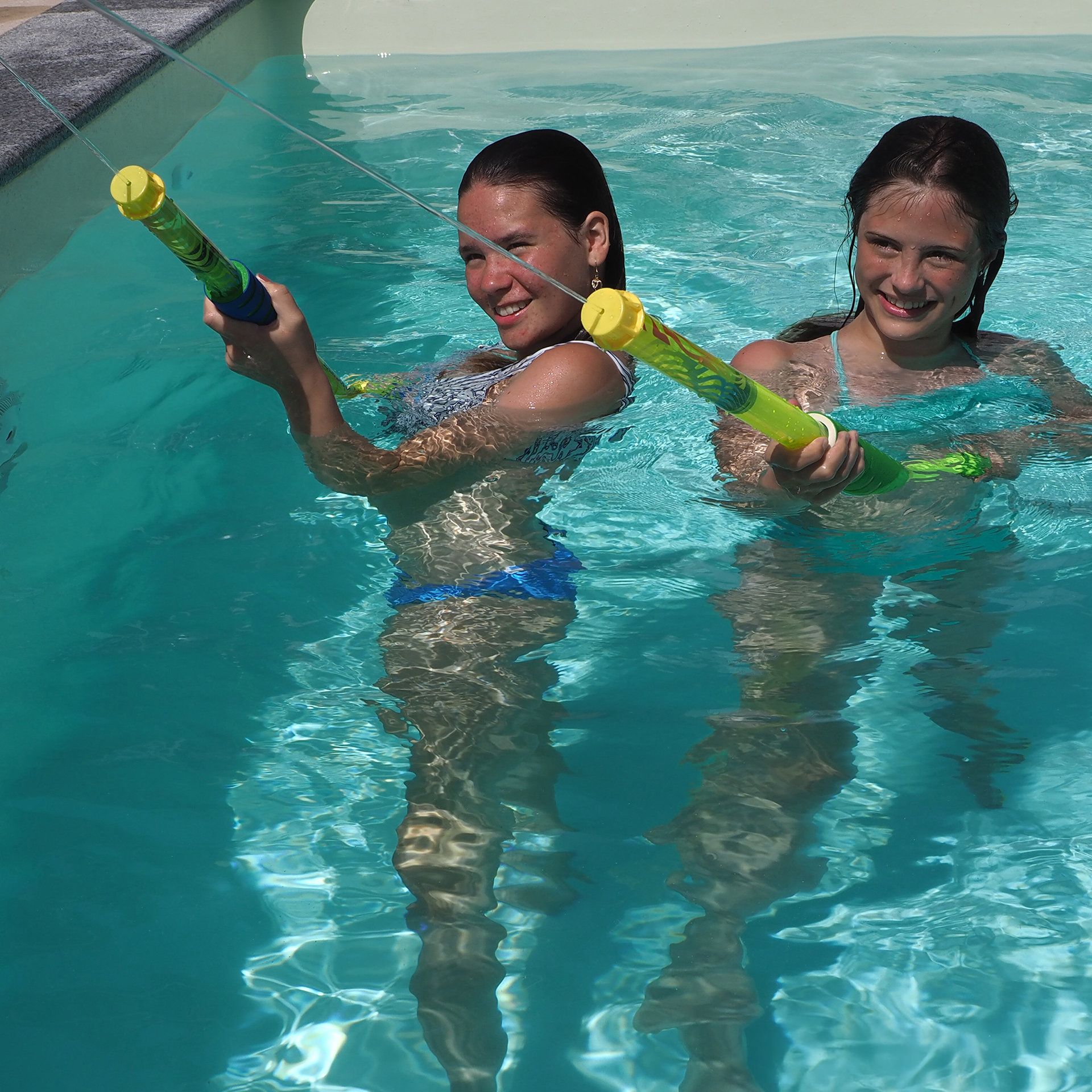 Mit der extra langen Mega-Wasserspritze kann die Wasserschlacht beginnen. Dank des großen Wassertanks von 400ml macht man jeden Gegner nass und schlägt ihn in die Flucht. 66cm lange Mega-Wasserspritze, weiche rutschfeste Schaumgriffe, transparente Wasserröhre, spritzt bis zu 15m weit. Mit doppelter Dichtung. Bitte beachten Sie: Der Artikel ist farblich sortiert, die Farbe kann nicht ausgewählt werden und kommt nach Verfügbarkeit.