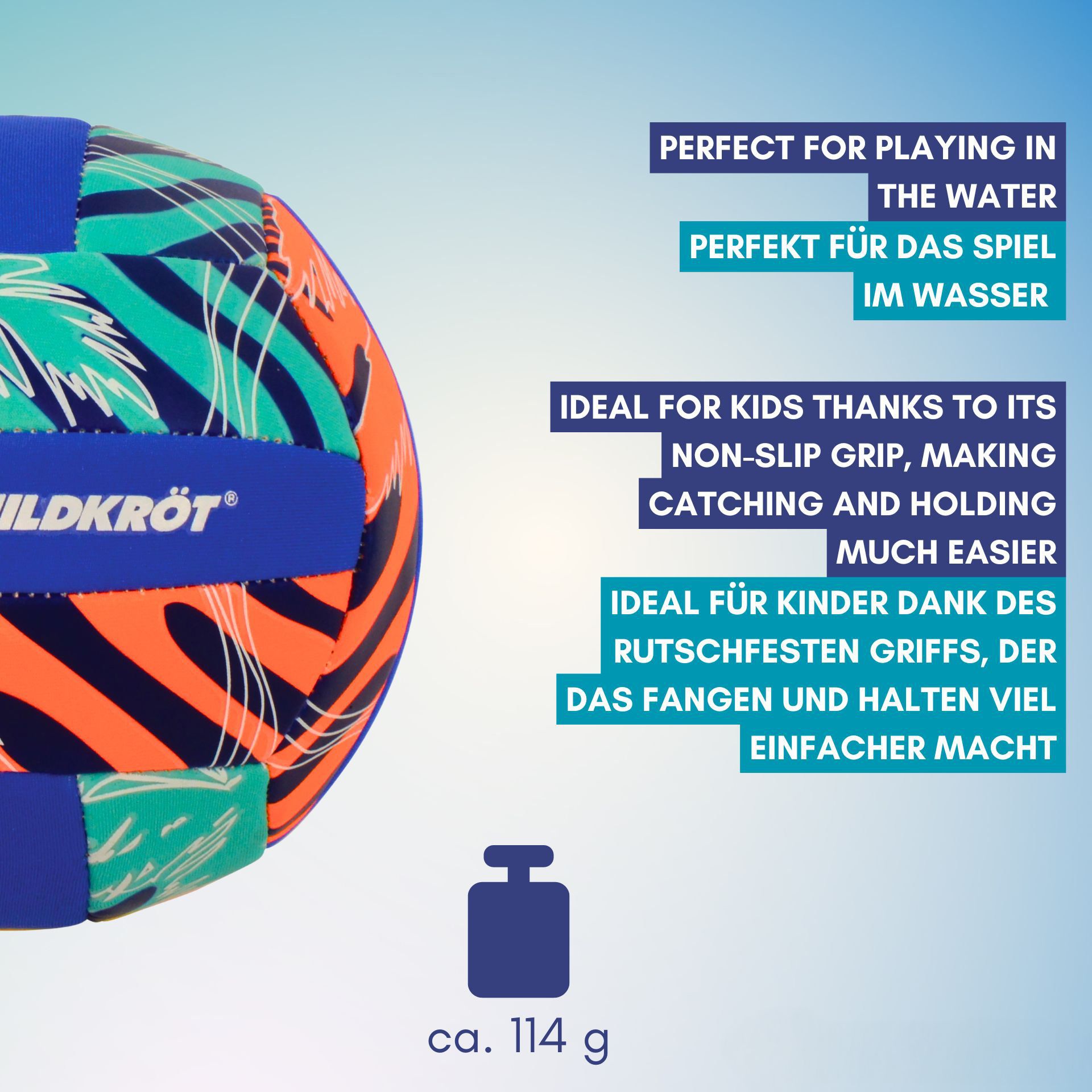 Die kleinere Größe macht diesen Ball besonders kinderfreundlich und ermöglichen eine einfache Handhabung und mehr Spaß beim Spielen. Im Vergleich zu Leder- oder Kunstlederbällen verursacht er deutlich weniger Hautreizungen, was ihn ideal für Kinder und intensiven Einsatz macht. Dank seiner robusten, salzwasserfesten Eigenschaften ist der Ball sowohl am Strand als auch im Wasser der perfekte Begleiter für unbeschwerten Spielspaß. Egal, ob du einen actionreichen Tag am Strand verbringst, im Garten mit Freunden und Familie oder Indoor z.B. im Kinderzimmer spielst – dieser Ball sorgt überall für Spaß und Bewegung. Bitte beachte: Der Artikel kommt in drei verschiedenen Designs.